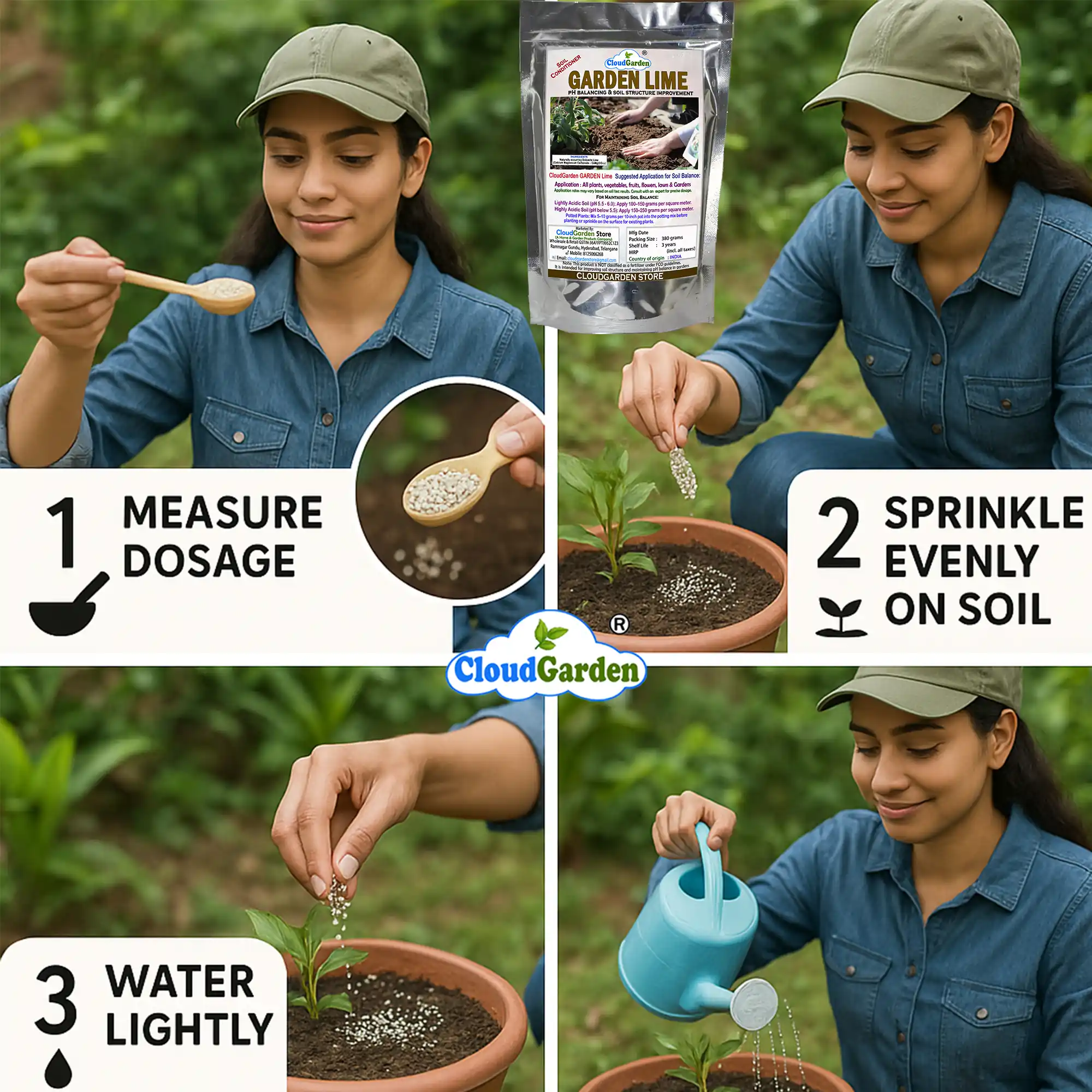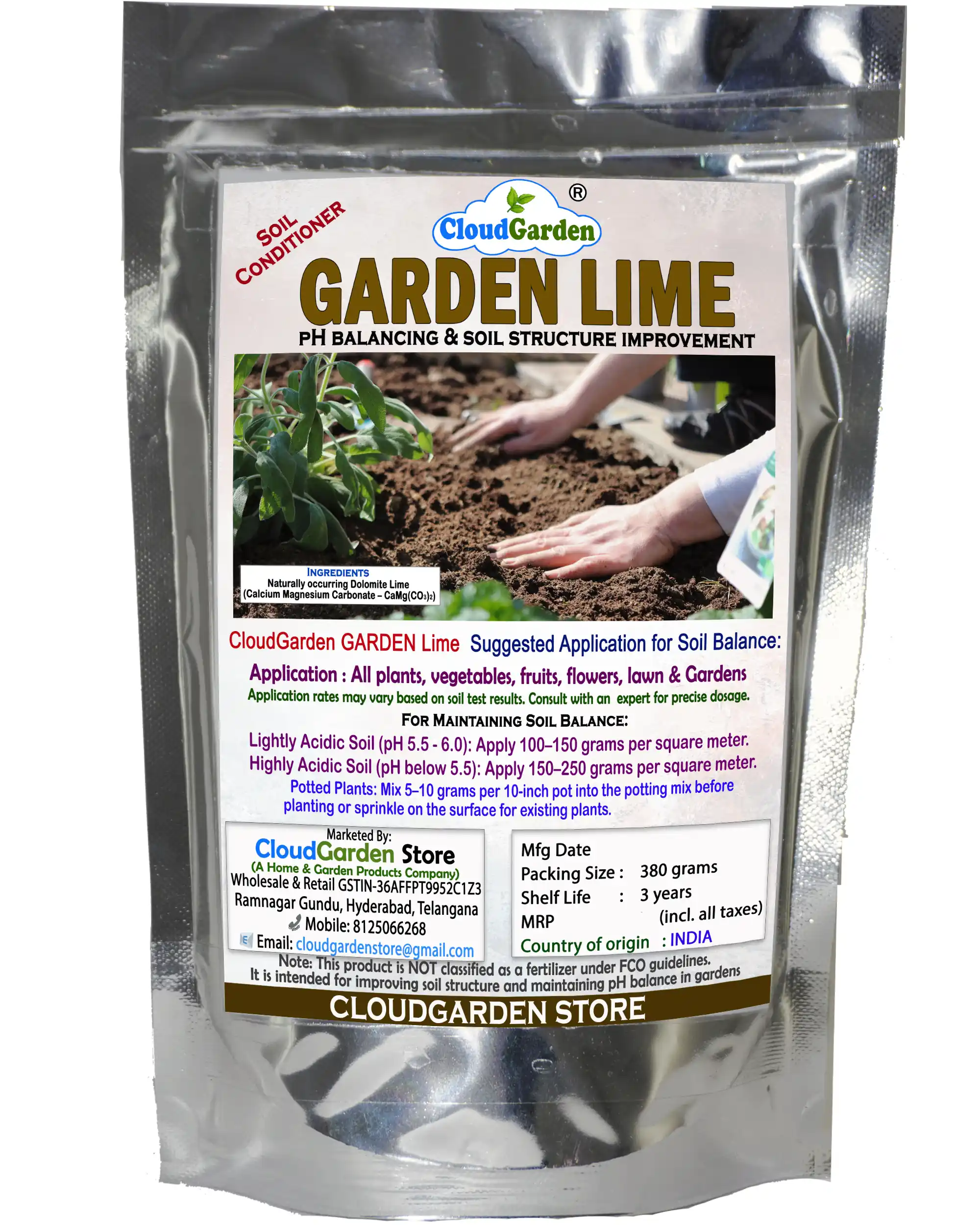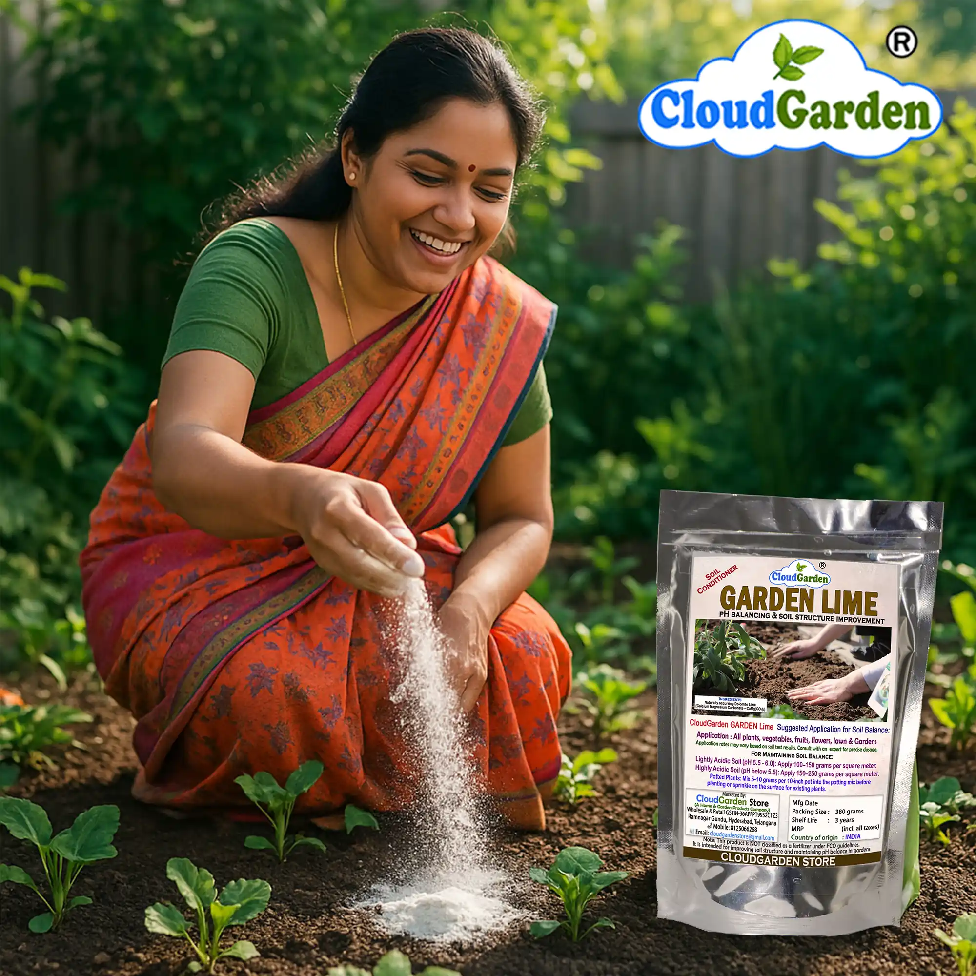 CloudGarden Garden Lime is finely processed to ensure easy application and even distribution in soil. It is designed only for home and garden use, making it suitable for vegetables, flowers, fruits, ornamental plants, and lawns grown for personal gardening purposes.