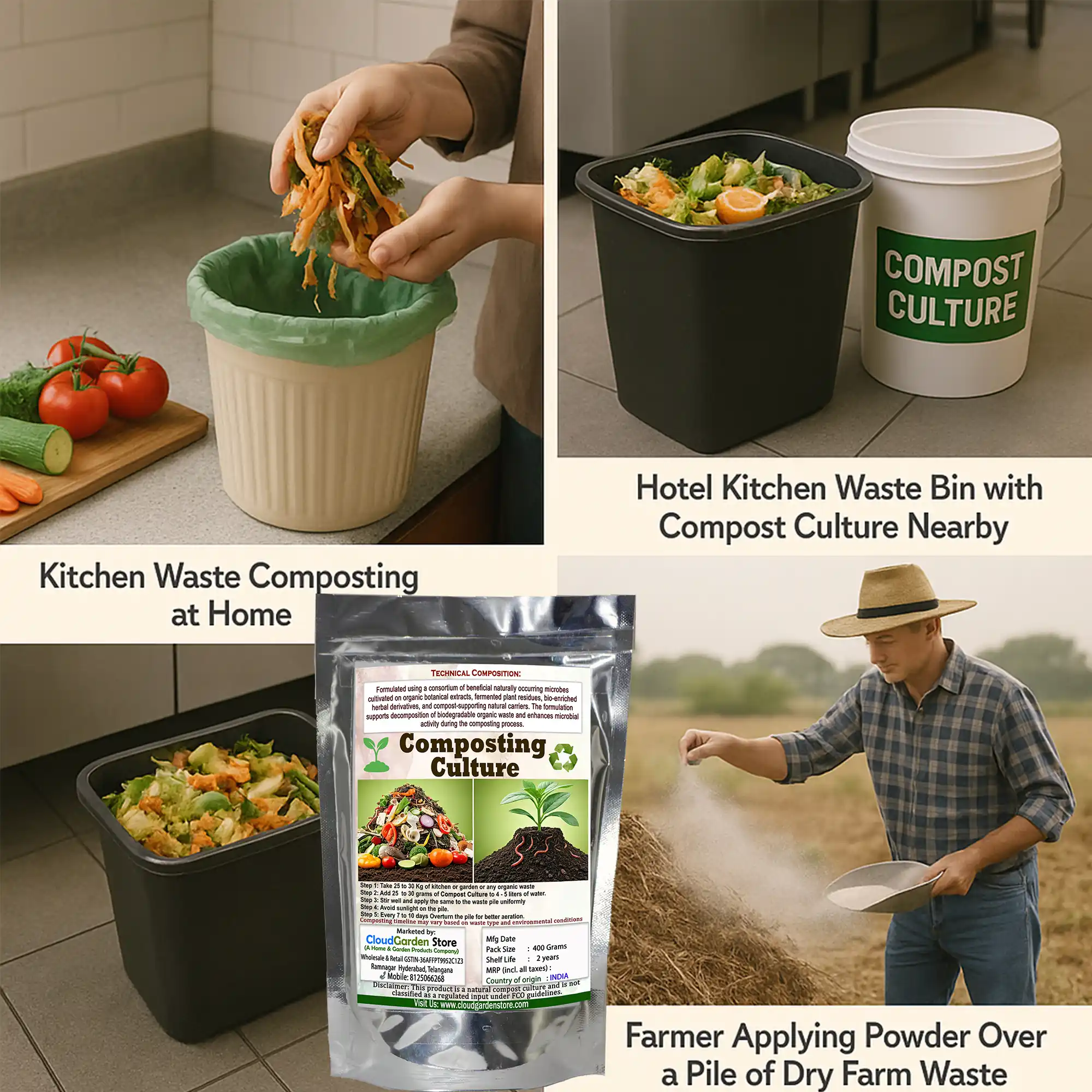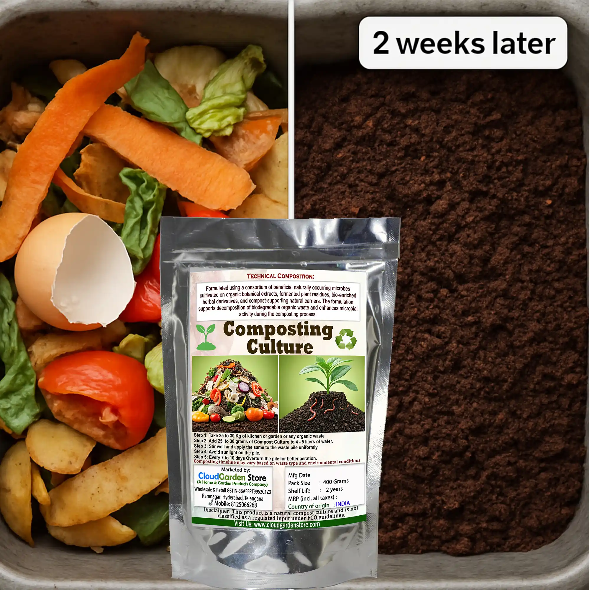 • 🌱 Supports Home Composting – Compost culture powder designed for kitchen waste, garden waste, and organic residues in home compost bins and pits.