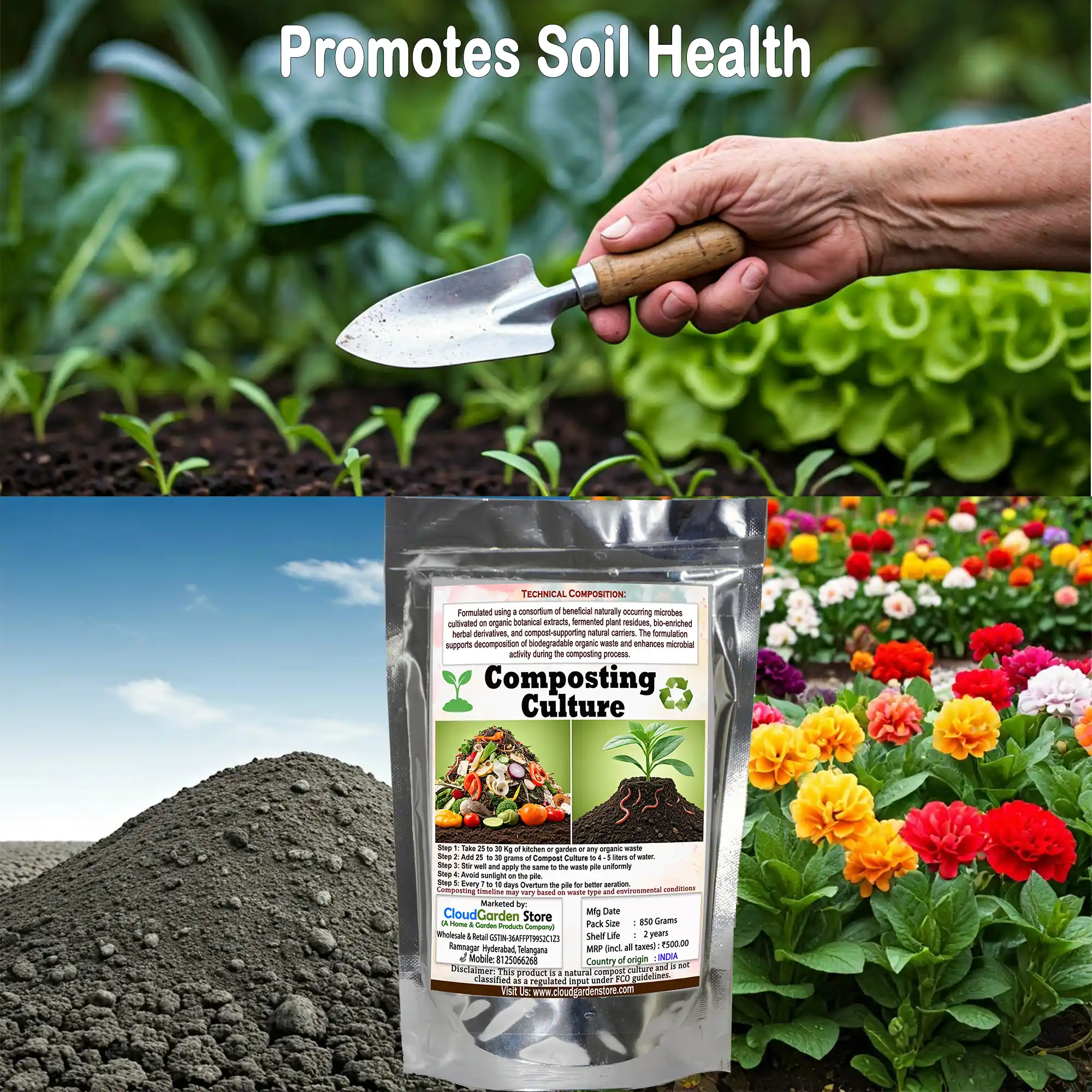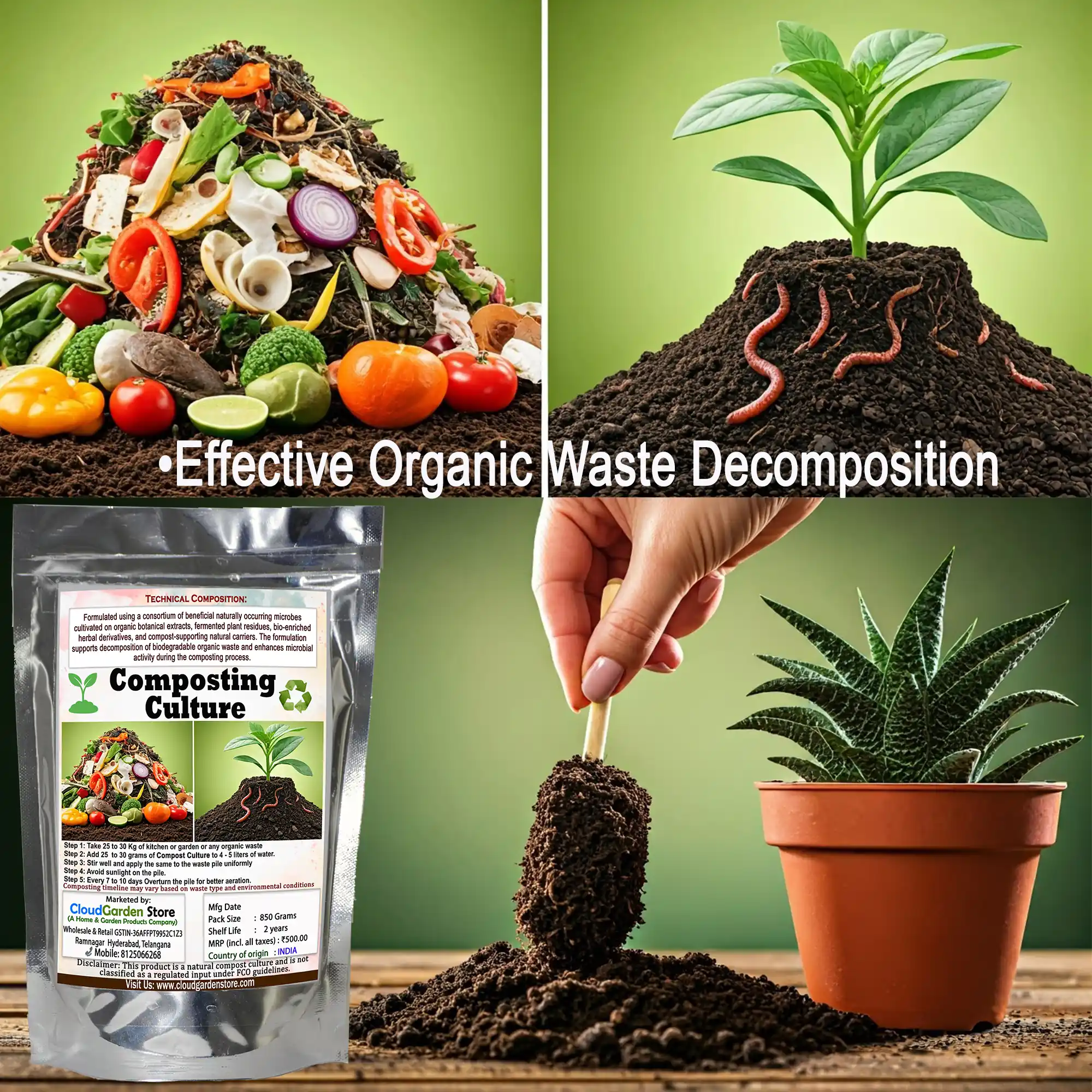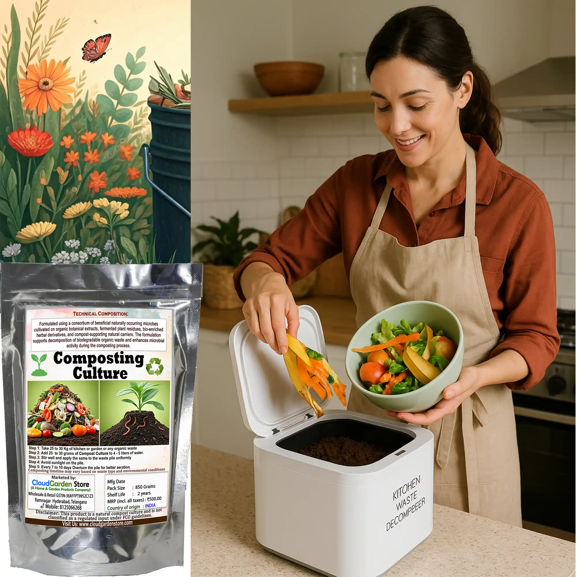 CloudGarden Composting Culture can be used across multiple composting setups, including household compost bins, terrace gardens, garden pits, and bulk organic waste composting systems. It is suitable for composting vegetable peels, fruit waste, dry leaves, garden trimmings, and farm residues under recommended conditions.