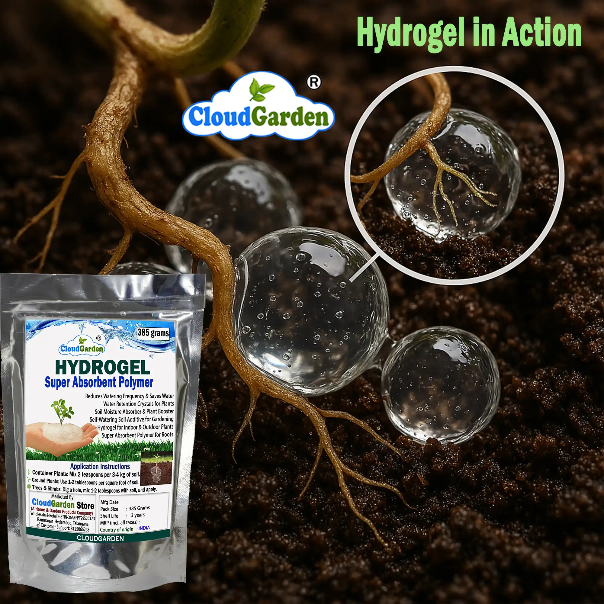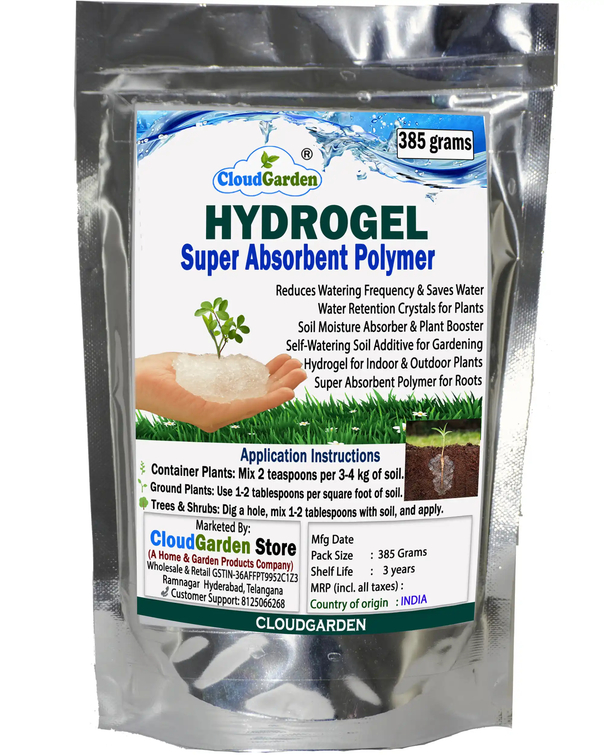 Maintaining balanced soil moisture becomes more challenging when gardening areas grow larger or when multiple plants need care at the same time. The CloudGarden Soil Moisture Retaining Hydrogel Mega Pack 385g is designed for gardeners who require extended moisture management across wider garden spaces, multiple pots, or long planting cycles. This pack is suitable for home gardeners, terrace gardeners, nurseries, and landscaping use where a higher quantity is more practical.