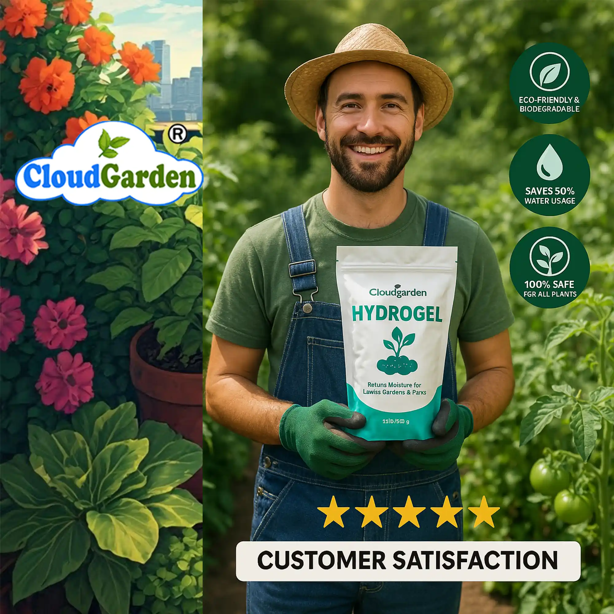 This gradual release helps maintain steady moisture levels near plant roots. It supports soil structure by reducing rapid drying, surface cracking, and uneven moisture distribution. The hydrogel works alongside soil, compost, and organic matter and does not replace normal gardening inputs.